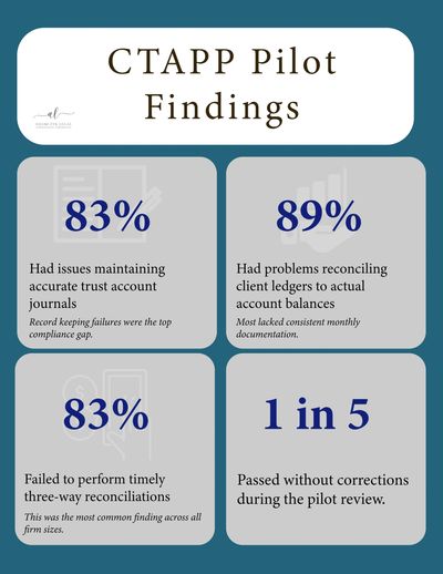 During the pilot, more than eighty percent of firms failed basic trust-accounting checks - not because they were dishonest, but because they were disorganized. Ledgers were incomplete. Reconciliations were skipped. Oversight slipped through the cracks.